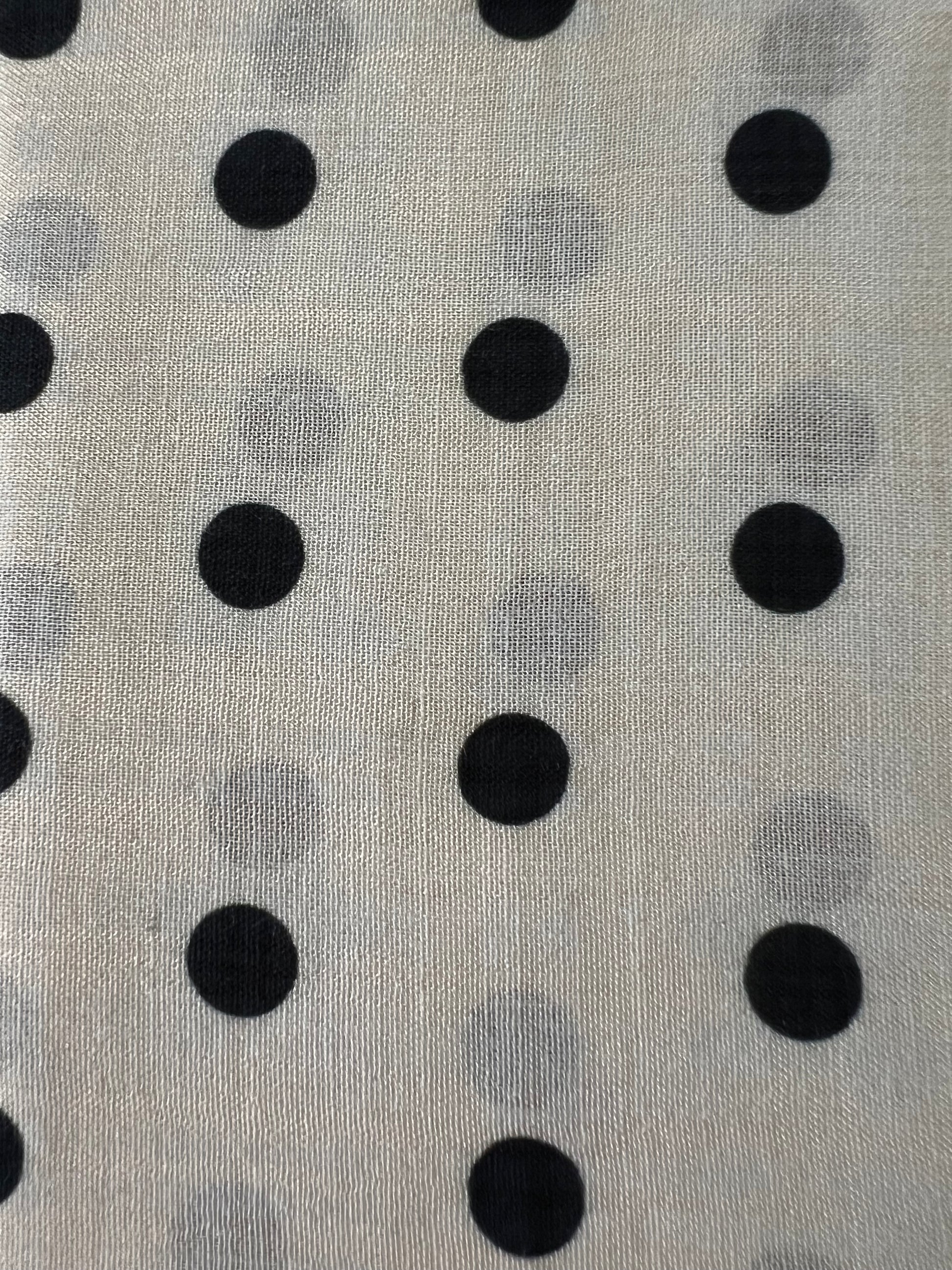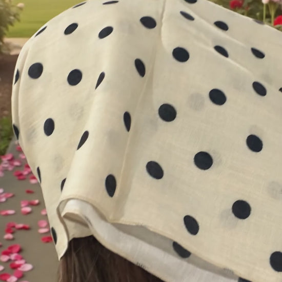 Cream and black polkadot banana. Tie closure. 58x58cm