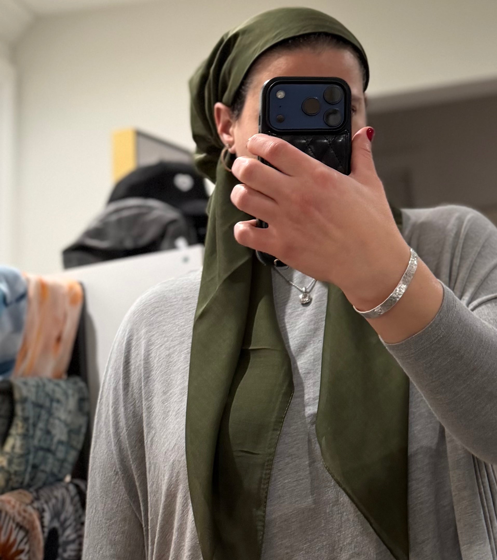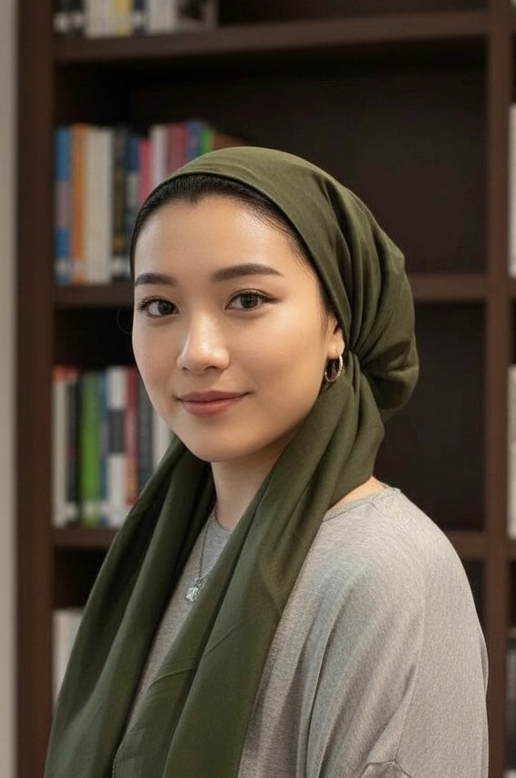 Lightweight, pretied tichel with velvet band. hidden elastic.