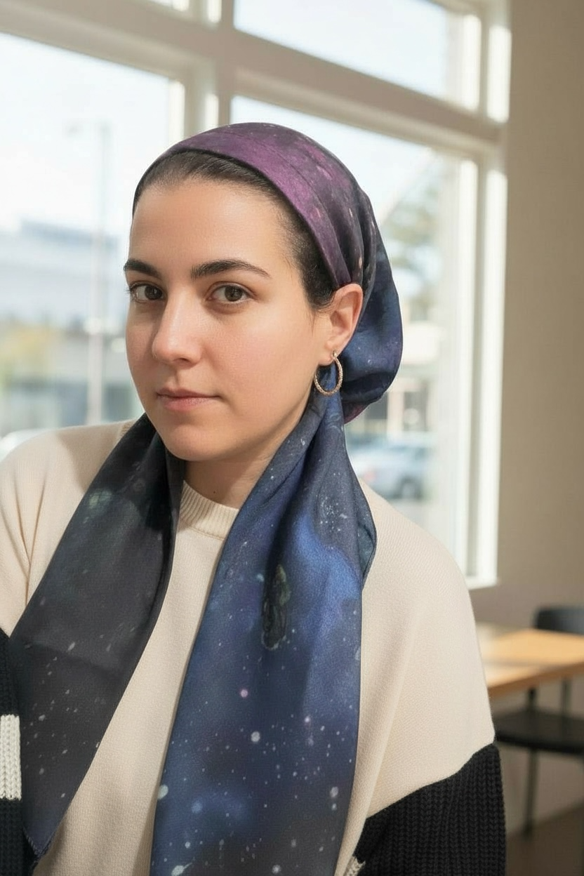 Butter soft, lightweight, pretied tichel with velvet band. hidden elastic.