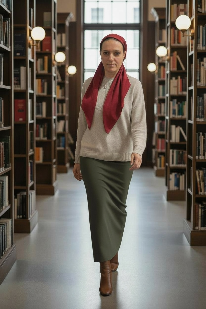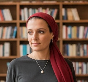 Lightweight, pretied tichel with velvet band. hidden elastic.
