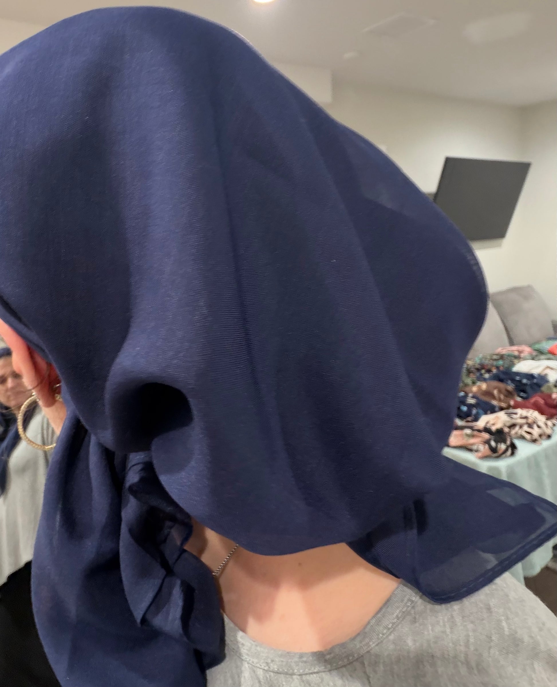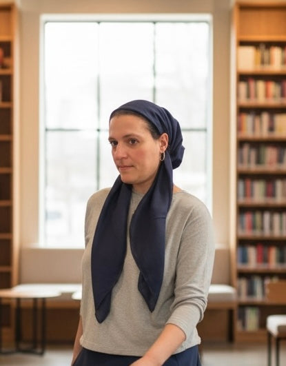 Lightweight, pretied tichel with velvet band. hidden elastic.