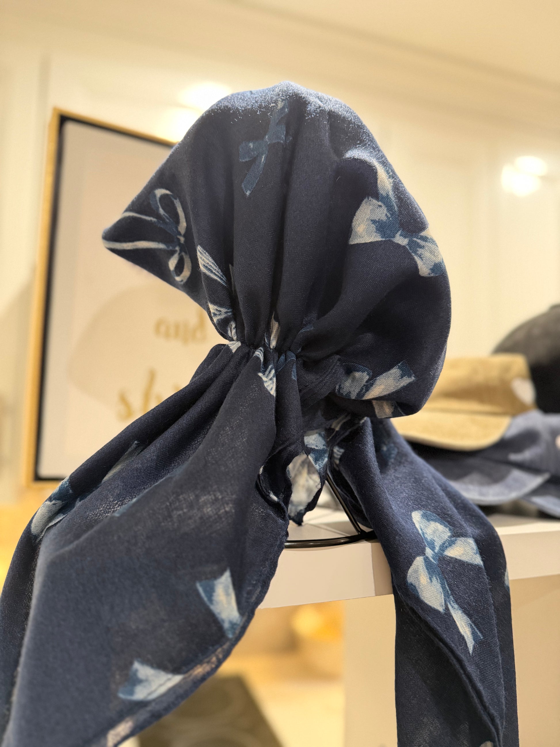 Lightweight, pretied tichel with velvet band. hidden elastic.