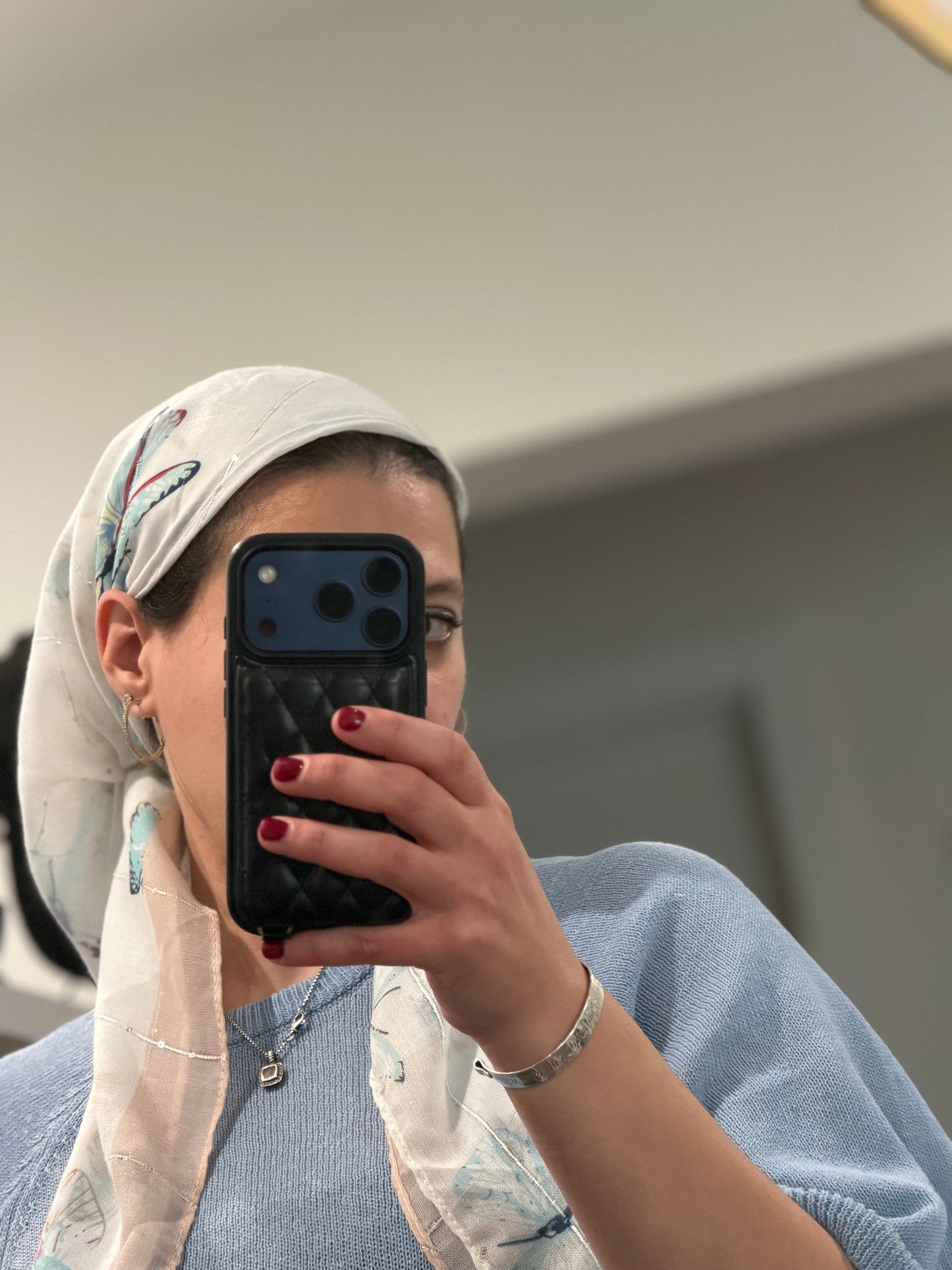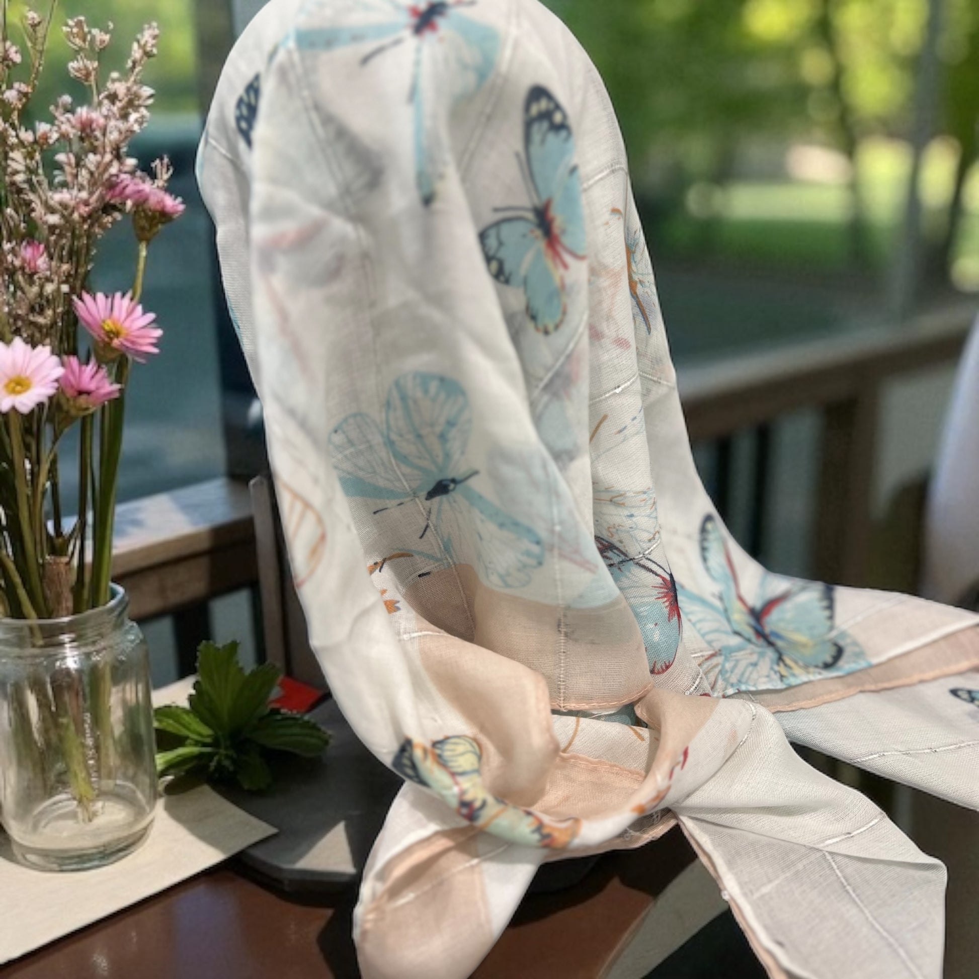 LIghtweight, Butterfly pattern. 90x90cm tichel with velvet band.
