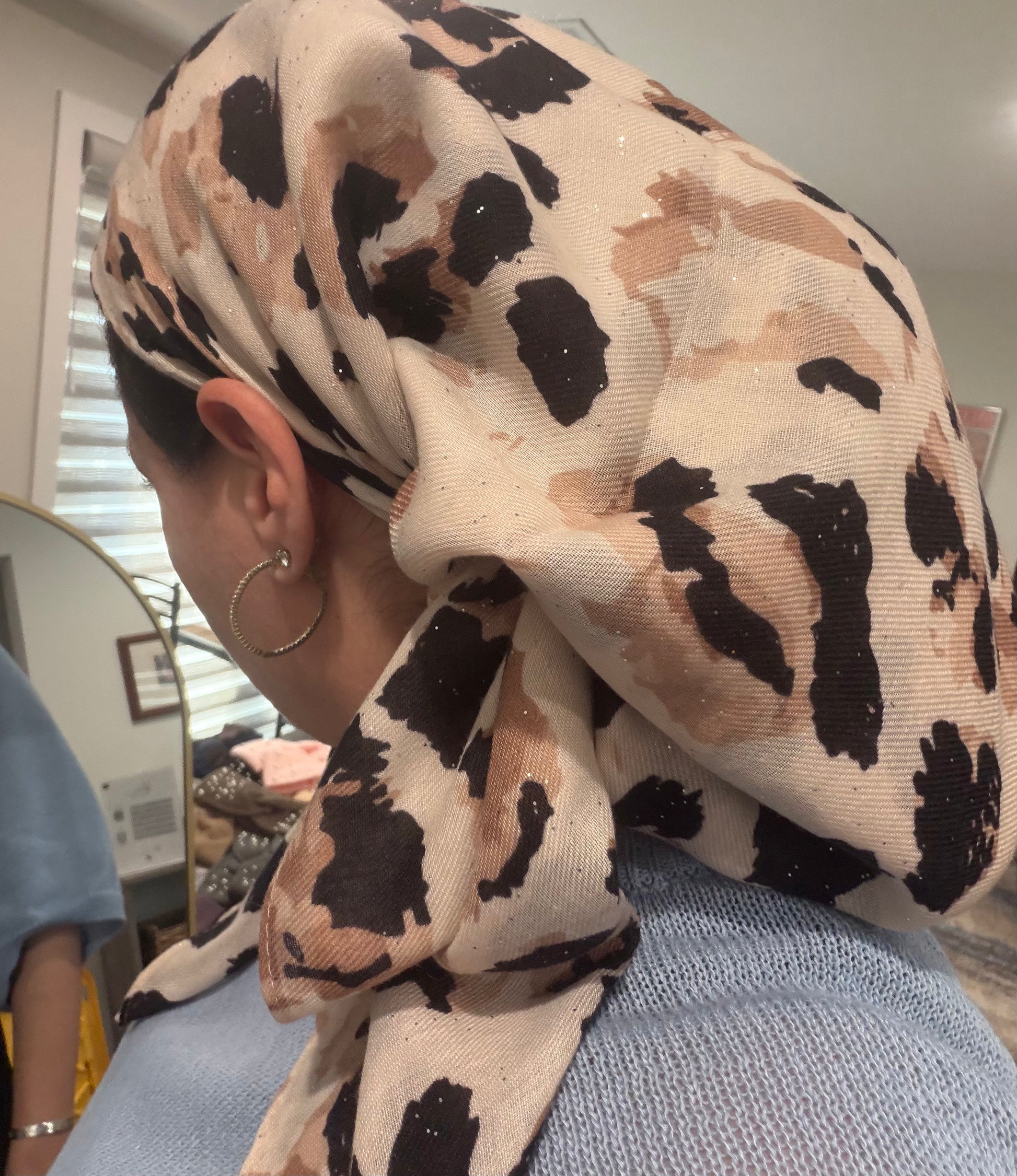 Buttery Soft fabric, 90x90cm tichel with velvet grip.