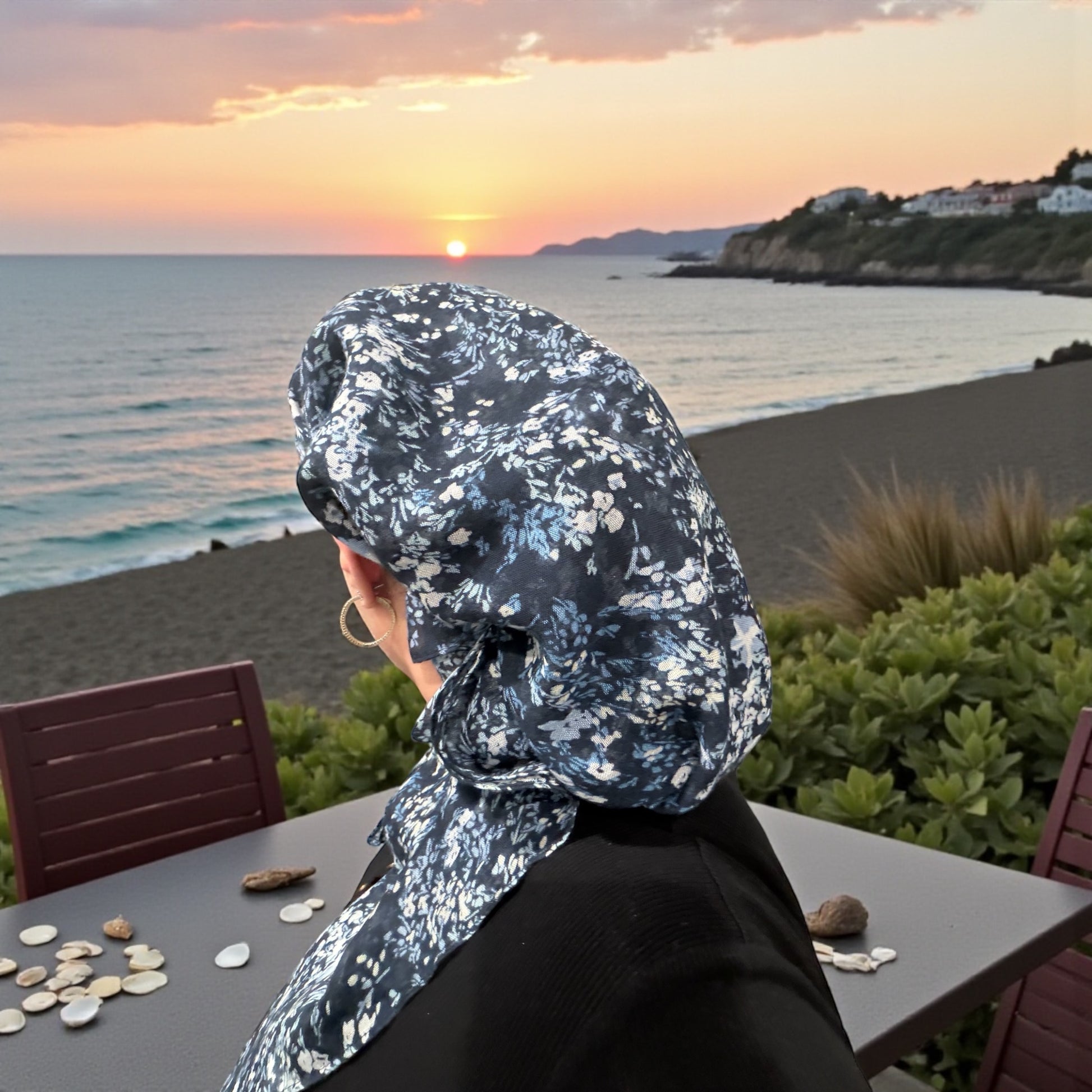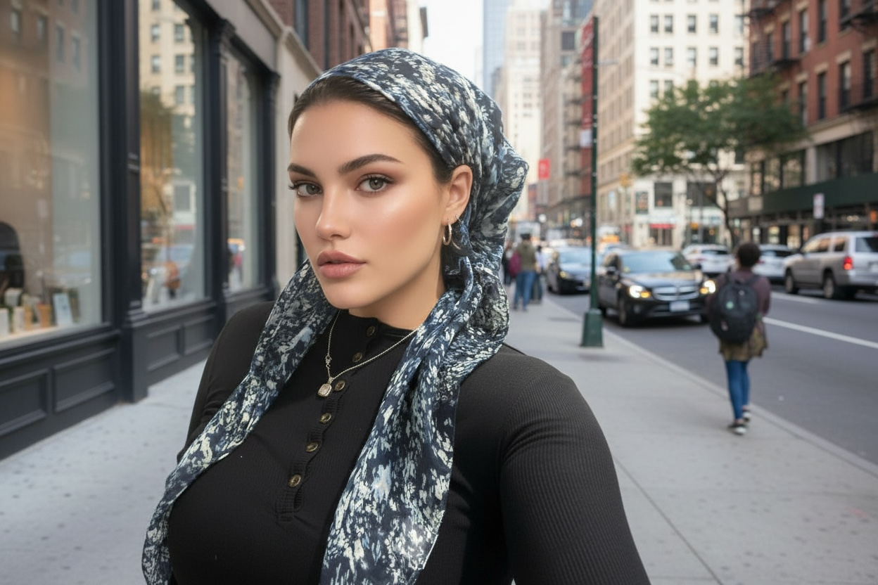 Soft Lightweight 90x90cm tichel headscarf square with velvet grip